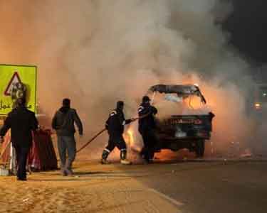 இதனால் ஆத்திரமடைந்த ஜமாலெக் கால்பந்து ரசிகர்கள் அப்பகுதியில் சாலை போக்குவரத்தை தடுத்து நிறுத்த முயன்றனர். மேலும், அங்கே நின்றிருந்த போலீஸ் வாகனம் ஒன்றையும் தீ வைத்து கொளுத்தினர்.